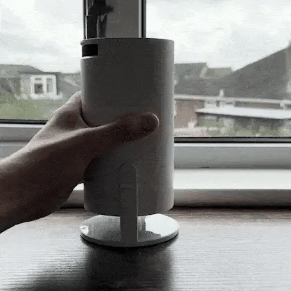 Le support rotatif se pose simplement sur une table/étagère et tu orientes comme tu veux. La mise au point et la correction d'image se font automatiquement.